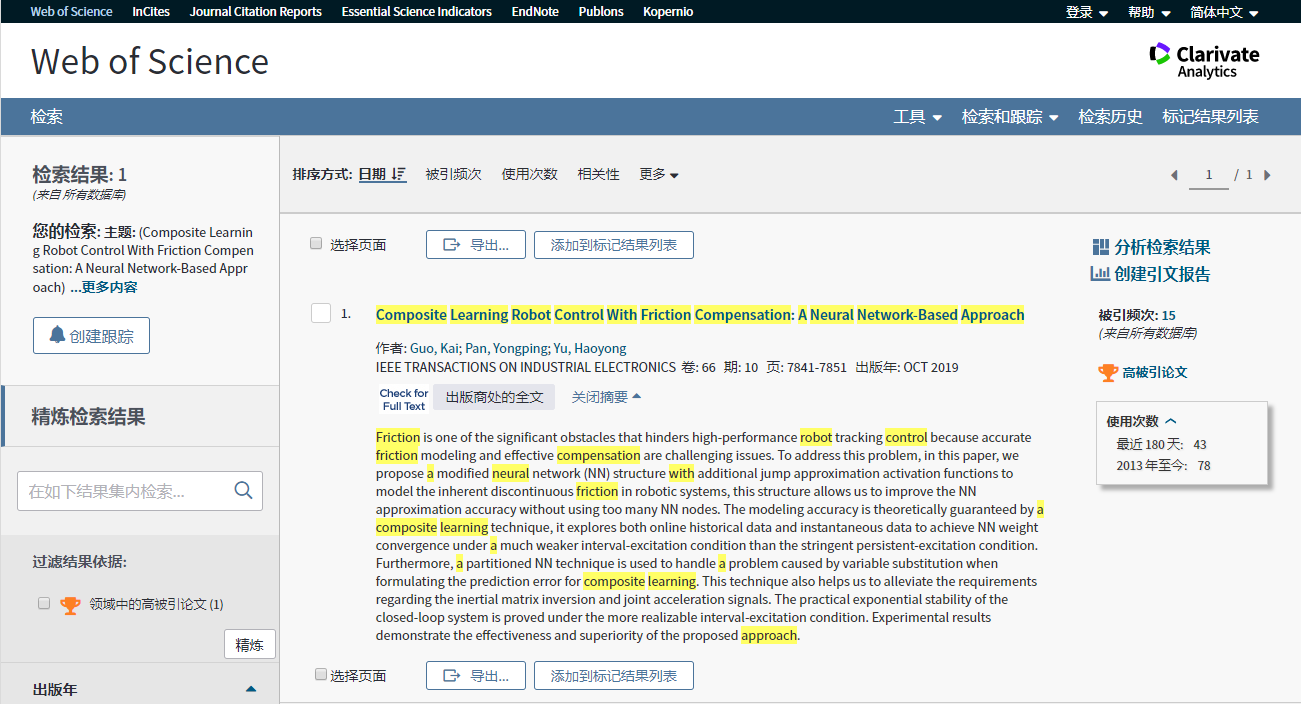 在过去几年内,该课题组在机器人、机电系统非线性控制等方面进行了深入研究,连续在机电领域的多个著名期刊Automatica、IEEE Transactions on Industrial Electronics、Automation In Construction等发表多篇高水平论文。