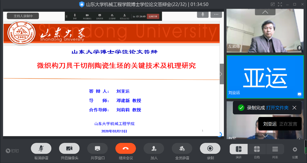 答辩工作分组进行,每场线上答辩都吸引了大量师生线上旁听,答辩会过程网络畅通、视频和通话清晰,过程严肃认真,内容丰富,学术气氛浓厚,专家提问专业、建议中肯,秩序井然,效果良好,所有程序与流程均与线下答辩相同。答辩全程采用录屏和录像双备份的视频存档。答辩后机械工程学院严格按照研究生院关于博士论文质量控制的要求进行了学位论文内部审核,进一步提升了学位论文质量。