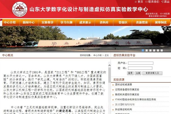 (2)2016年,机械工程学院新增“数字化设计与制造国家级虚拟仿真实验教学中心(山东大学)”依托山东大学机械基础国家级实验教学示范中心和山东大学-山东临工国家级工程实践教育中心开展建设,以典型现代制造企业为虚拟环境,以数字化设计和制造为知识主线,以企业生产过程中的各个生产环节为内容,建立了以培养学生创新实践能力为核心,构建数字化设计仿真平台、数字化制造仿真平台、数字化工厂平台、创新实践平台(四平台)的虚拟仿真实验教学体系,努力提高学生的综合素质、知识结构、创新能力和工程实践能力。