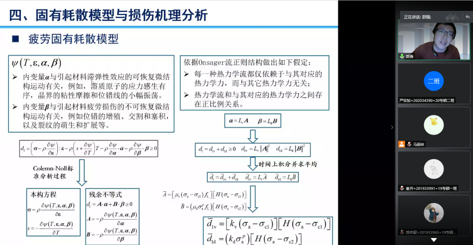 讲座过程中,来自东京大学的冯仰刚博士、上海交通大学的于钊博士、埃因霍芬理工大学的李存博士、西安交通大学的孙加林博士、日本原子能研究所的张泰瑞博士、北卡莱罗纳农业与技术大学的蔡毅博士、新加坡理工大学的陈晓博士、法国索邦大学的杜文谦博士、美国科罗拉多大学博尔德分校的郭强博士、英国伦敦学院大学的黄钰泽博士、加拿大麦吉尔大学的石佳昊博士、香港城市大学的徐嘉骏博士、特伦德尔能源公司的张振友博士分别作了题为“Wearable robot and AI in robot application”、“非视觉交互在无人驾驶汽车上的情境感知效果”“为老年人幸福感而设计:促进代际间故事传递的系统设计”“多级强韧化自润滑高速切削硬质合金刀具研究”的报告,“在役结构力学性能的压入检测技术”“3D打印的实时监测与控制和基于机器人的混合3D打印”“多物理场耦合数值模拟在微器件设计制造上的应用”“四足机器人的运动生成及控制”“基于固有耗散的高周疲劳性能评估与损伤机理分析”“金属增材制造实时监测”“磁流驱动的多模态下肢康复机器人的设计与控制”“风力发电机的状态监测”的学术报告。讲座最后,机械工程学院副院长宋清华向参与讲座的各位青年学者的辛苦付出表示感谢。