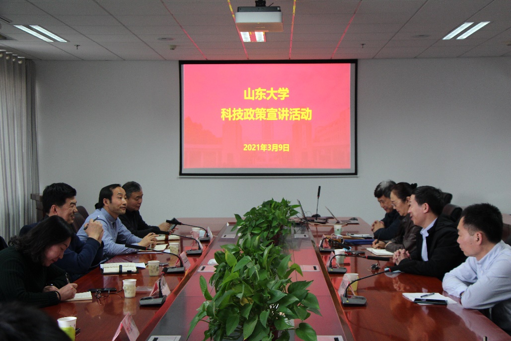 3月9日,科技合作与成果转化政策宣讲会在创新大厦1102会议室召开,山东大学技术转移中心主任王立民,南京雨花台区科技局副局长、国家大学科技园副主任徐刚,技术转移中心牟春竹、刘灿刚、高杰参加座谈交流。机械工程学院院长黄传真、党委书记刘杰、副院长宋清华出席会议。会议由党委书记刘杰主持。