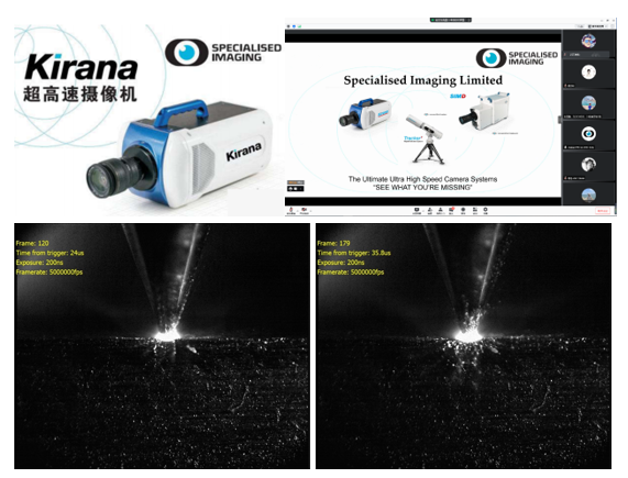 Kirana超高速摄相机为英国Specialised Imaging公司生产的Kirana-05M型号超高速摄相机,该相机荣获了“英国女王奖”。主要功能特色:全球唯一的超高速连续视频记录能力(最高拍摄速率:5000000fps(5百万帧/秒))。同时具备超高拍摄速率及高分辨率(924x768分辨率拍摄速率为1000fps~5000000fps)。使用特殊芯片,具有超高速连续记录能力(像素数:924(W)×768(H);图像深度:10位;像素大小:30μm;曝光时间:100ns~1/帧速率(10ns递进);每次拍摄可连续记录180帧)。超高速摄相机可用于能源、材料、机械、电子、医学、生命、土木等领域的基础研究。