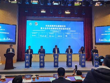 在科技成果转化高端论坛重大合作与成果转化项目签约仪式上,刘延俊教授代表山东大学与山东华特拓疆智能装备有限公司签署了“波浪能发电及智能海洋观测装置技术”转化协议。刘延俊教授指出未来将进一步瞄准技术前沿、对接企业需求,进一步加强产学研融合、集中攻坚关键技术,进一步深化校企合作,与企业携手共进。