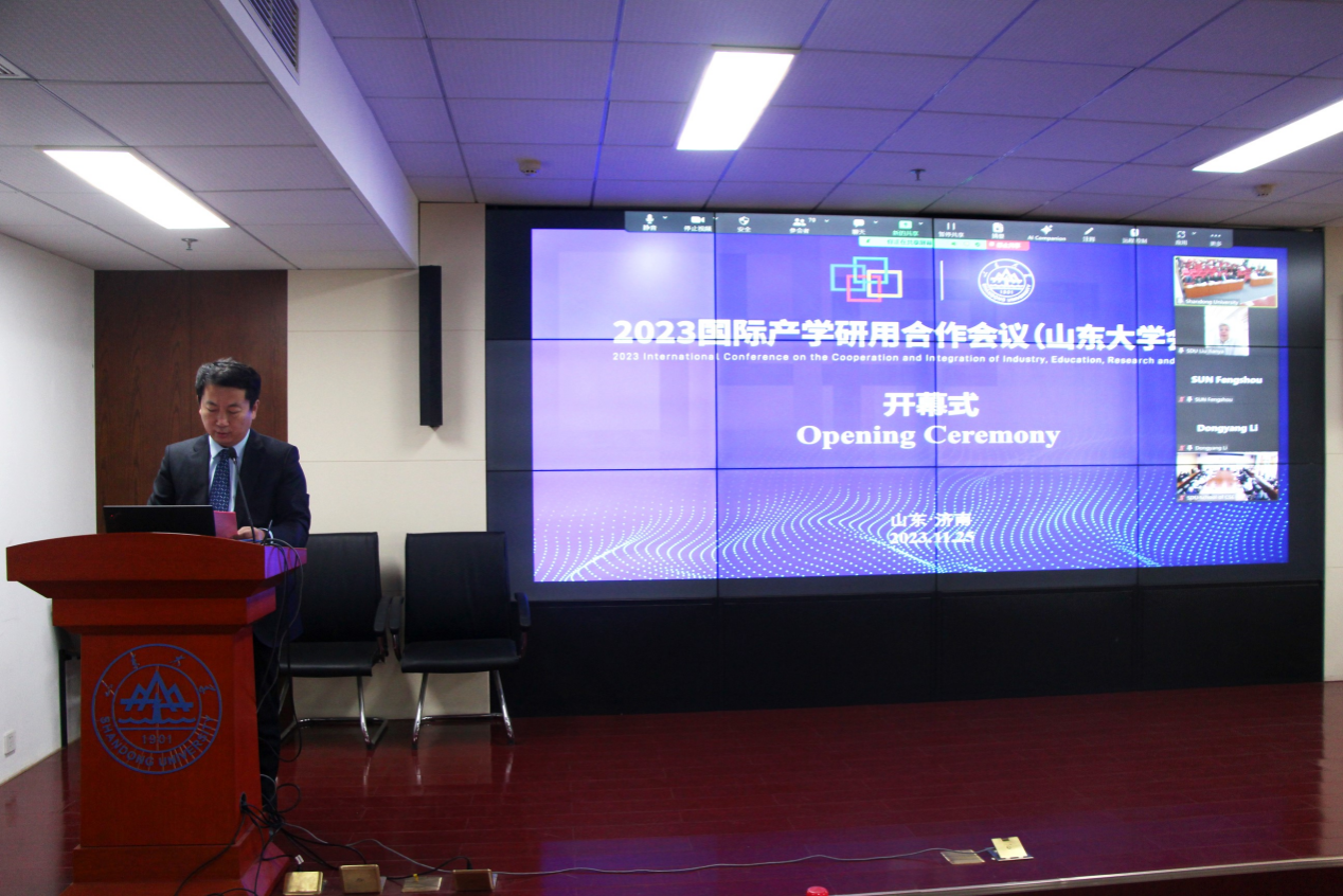 11月25日上午,由教育部学校规划建设发展中心、山东省教育厅主办,山东大学承办的2023国际产学研用会议(山东大学会场)通过线上与线下相结合的方式举行。山东大学副校长刘建亚线上出席开幕式并致辞。山东大学机械学院院长万熠主持开幕式。yl23455永利官网、控制科学与工程学院、材料科学与工程学院、数学学院、学科建设与发展规划部、研究生院、科学技术研究院、国际事务部等相关单位负责人参加会议。