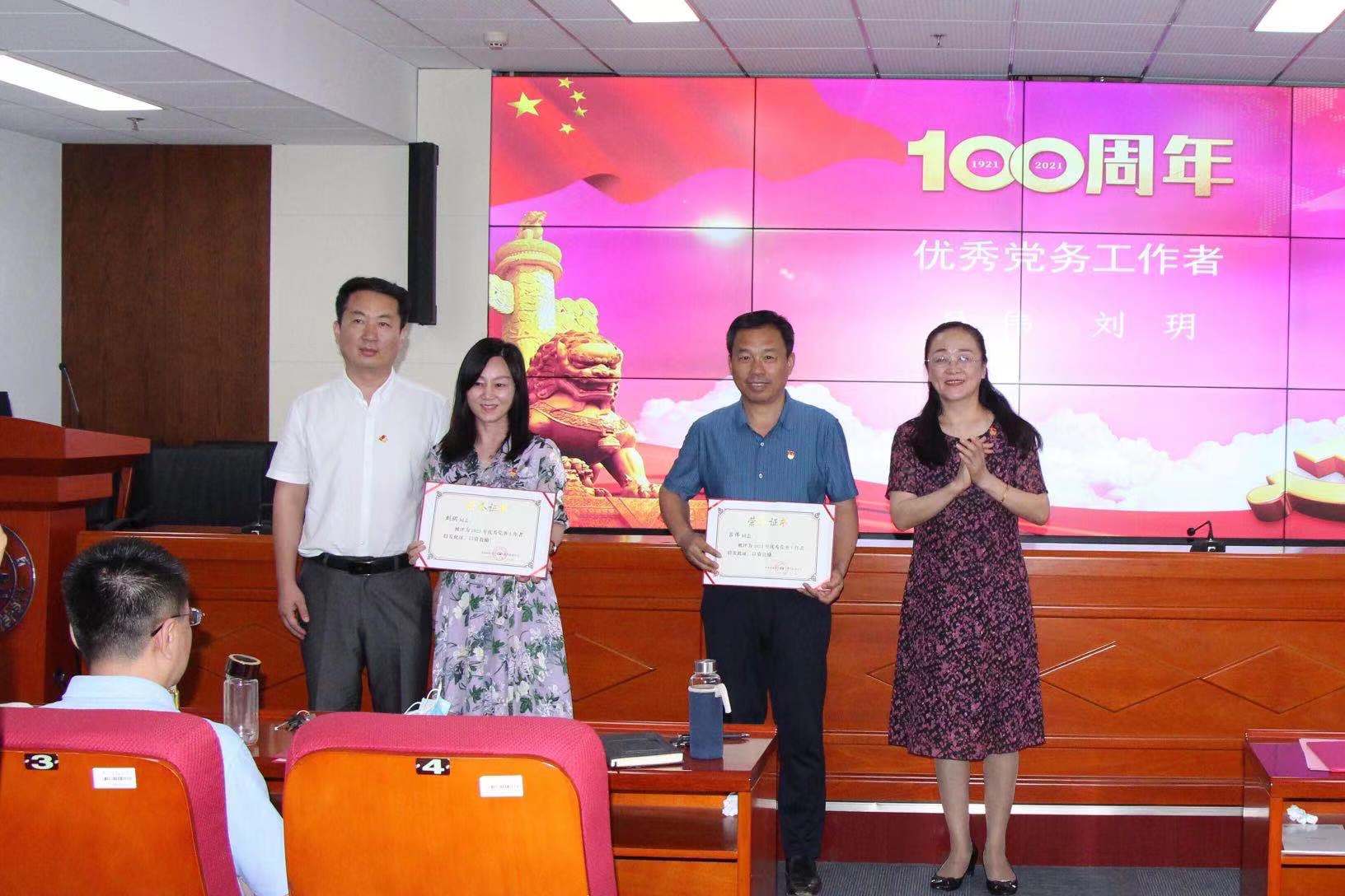 随后,刘杰宣读学院党委关于表彰2021年优秀党员、优秀党务工作者、先进基层党组织的决定。她指出,在推进学校“由大到强”历史性转变,促进学院事业高质量发展过程中,充分发挥了党组织的战斗堡垒作用和党员的先锋模范作用,涌现出一批先进典型。希望受表彰的先进集体和优秀个人要珍惜荣誉、戒骄戒躁、再接再厉,树立更高的目标和追求,不断取得新的突破,创造新的业绩,在学院转型发展中再创佳绩、再立新功。常务副院长万熠、刘杰为“两优一先”先进个人和集体颁发荣誉证书。