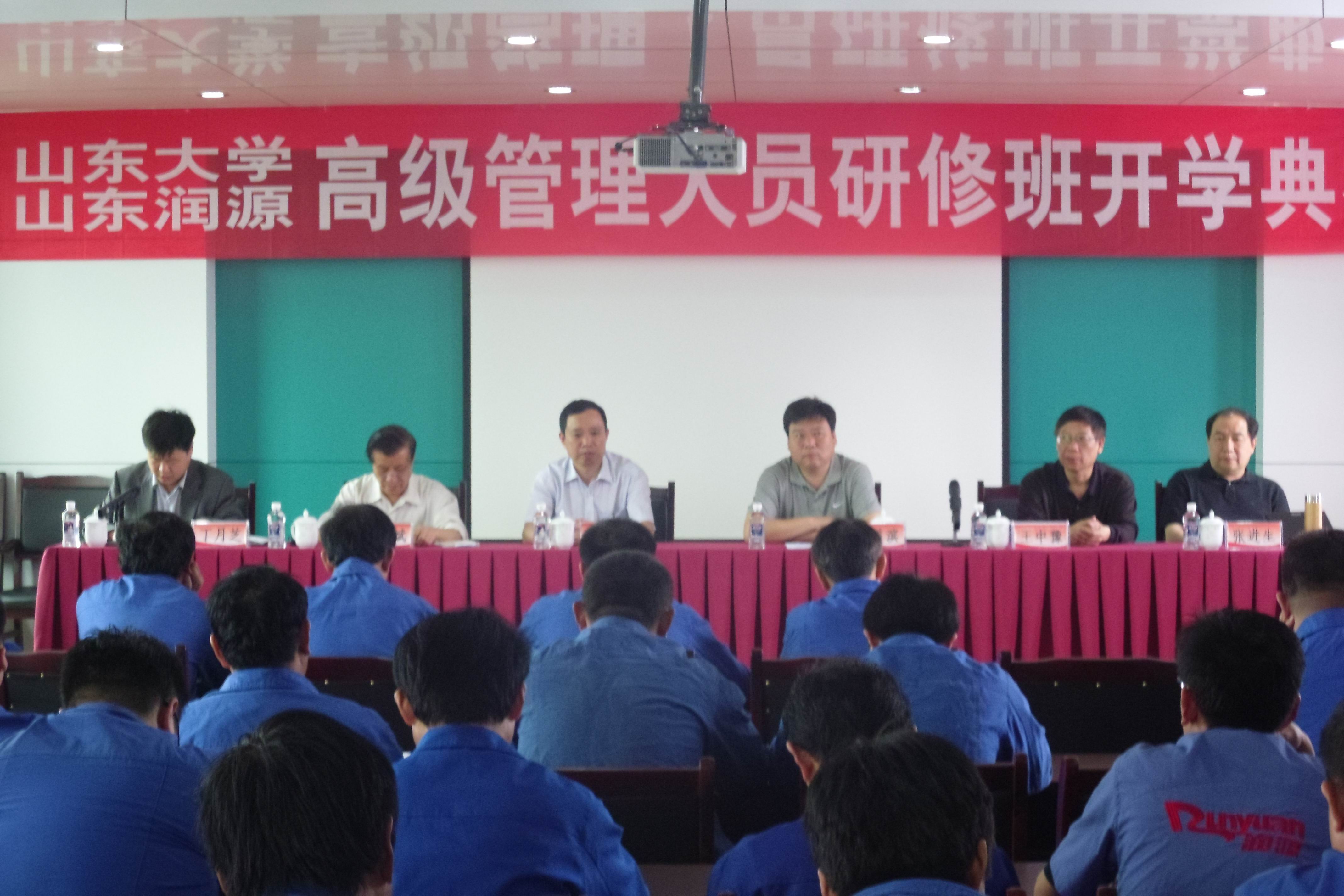 5月18日,山东大学山东润源公司高管研修班开班典礼在临清市山东润源实业有限公司会议室举行。机械工程学院党委书记仇道滨,临清市委组织部常务副部长张容元,山东润源实业有限公司董事长丁月芝及公司中层以上业务骨干50余人参加了开班典礼。开班典礼由聊城市政府原副秘书长、中国社会管理科学院特约研究员王洪斌主持。