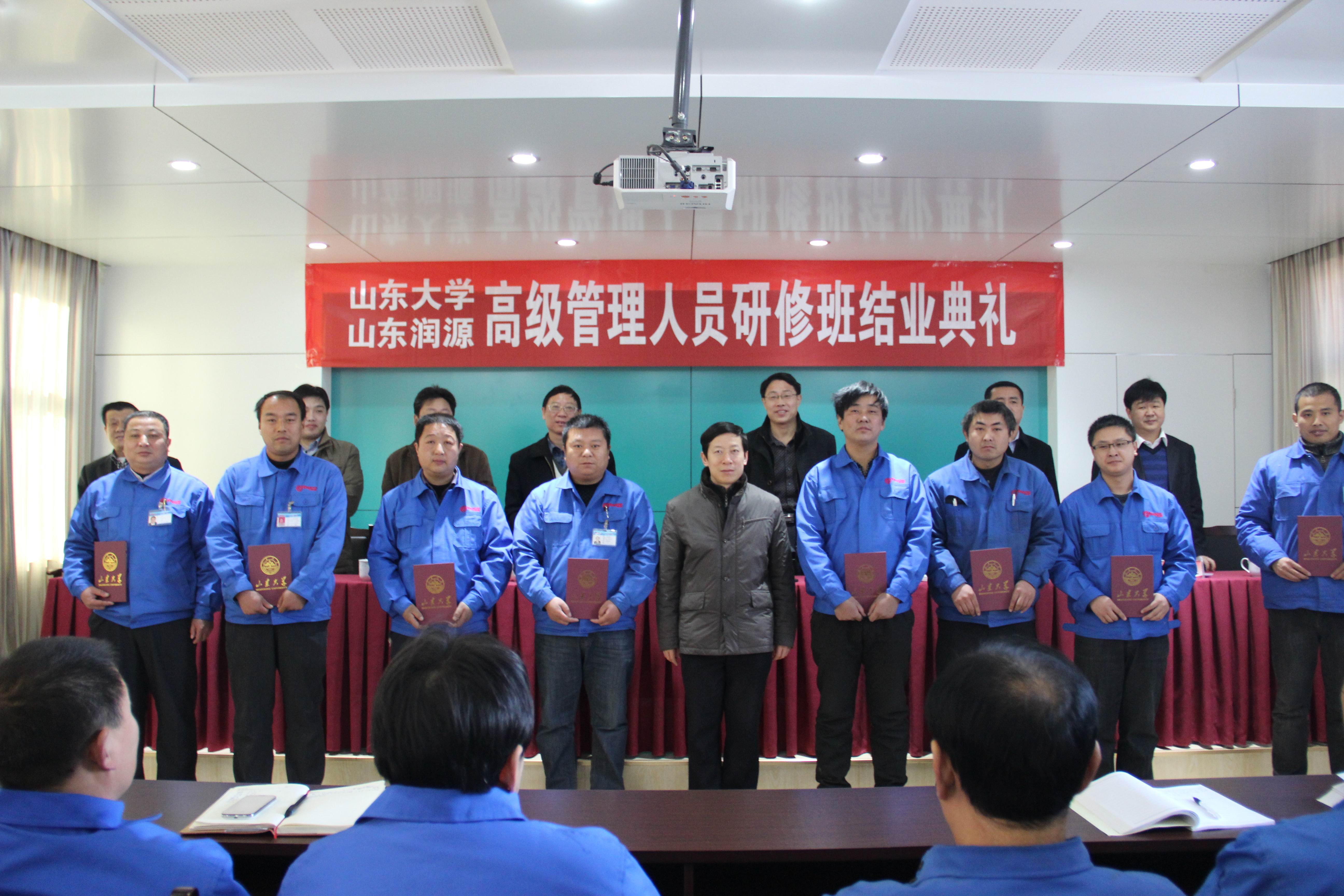 12月11日上午,山东大学-山东润源公司高管研修班结业典礼在临清市山东润源实业有限公司会议室举行。机械工程学院院长黄传真教授,副院长李方义教授,临清市委组织部、经信委、科技局有关领导,山东润源实业有限公司董事长丁月芝及公司中层以上业务骨干50余人参加了结业典礼。结业典礼由聊城市政府原副秘书长、中国社会管理科学院特约研究员王洪斌主持。