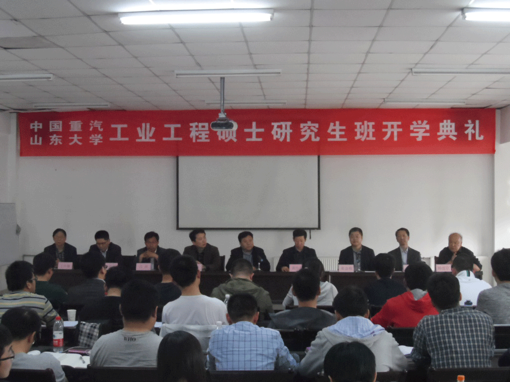 4月9日,山东大学-中国重汽2016级工程硕士班开学典礼在中国重汽集团医院办公楼会议室举行。中国重汽集团副总经理童金根,人力资源部副总经理王建华,教育部长江学者、山东大学博士生导师、机械工程学院院长黄传真教授,学院党委书记仇道滨教授,副书记吕伟,副院长万熠等双方负责人及工程硕士班全体学员参加了开学典礼。典礼由中国重汽集团教培中心主任韩进臣主持。
