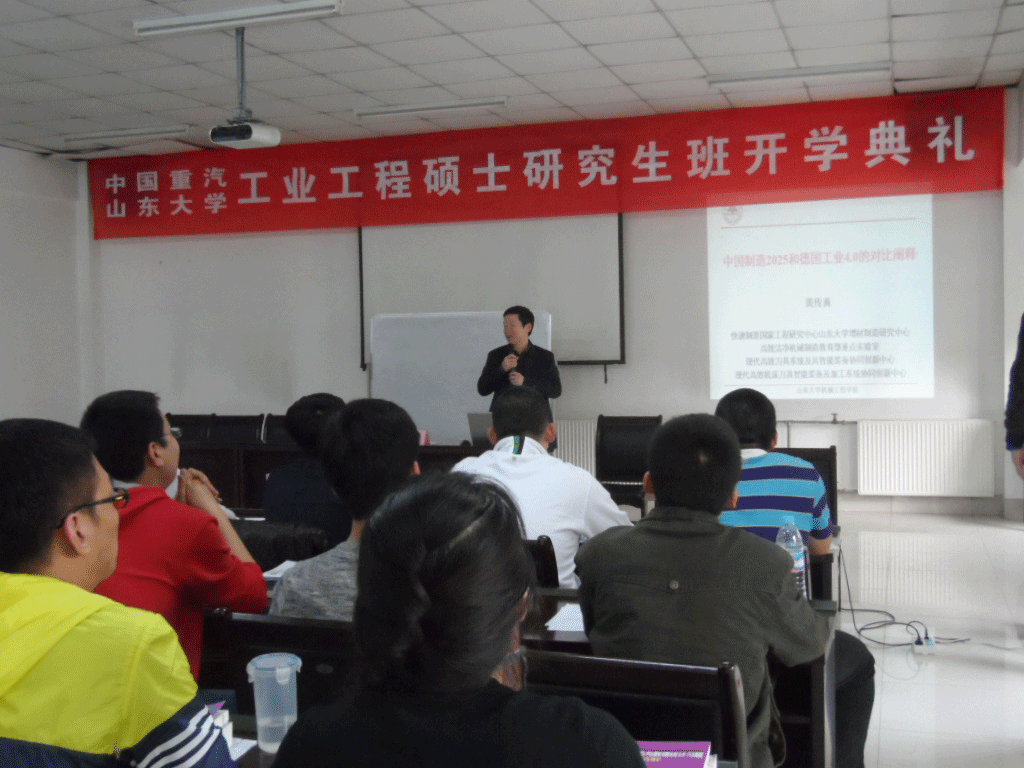 仇道滨在讲话中简要介绍了山东大学及机械工程学院的基本情况。他高兴的回顾了山东大学和中国重汽集团自2005年签署了全面合作战略协议并进行了多项合作的往事,对中国重汽集团这样国际知名企业选择山东大学合作表示由衷的感谢。他表示学院将以“工业工程”学科专家学者为基础,组成优秀的师资阵容,努力为本期工程硕士班授好课。他希望学院和重汽集团今后在科学研究、人才培养等方面能够有更多的合作,结出更多的硕果,并预祝本期工程硕士班取得圆满的效果。