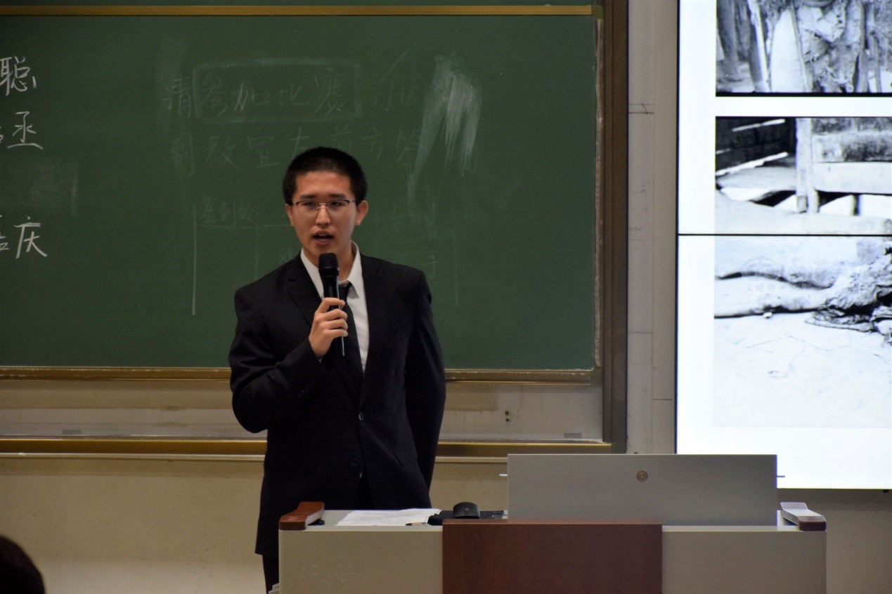 19时,比赛正式开始。主持人介绍比赛规则后,十三位选手依次上台讲述他们带来的党史故事。他们选择了不同时期、不同主题的党史故事进行讲解,或以人物为主线,再现了革命先辈在百年风雨中的顽强拼搏与艰苦奋斗;或以事件为线索,串联起了党百年风华中一个个重要的历史节点;或以地点为标志,用一座座城市的过往展示了党在革命建设中取得的辉煌成就。其中,赵禹皓同学展示了瞿秋白烈士为共产主义奋斗的一生,在《国际歌》中激昂的歌声中,在场观众也被“英特纳雄耐尔就一定要实现”的决心感染;李嘉庆同学选择了土地改革与解放战争作为展示主题,他昂扬的精神、真诚的情感仿佛让在场观众重回那个时代,体会到了当时人民遭遇的苦难与不幸,更加深刻地理解为什么解放战争是一场人民战争。