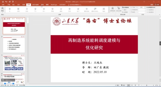 510日上午1000,由机械工程学院举办的海右博士生论坛以线上的形式顺利举行。主讲人王闻杰博士作了题为再制造系统能耗调度建模与优化研究的学术报告,部分老师和硕博研究生聆听了此次讲座。
