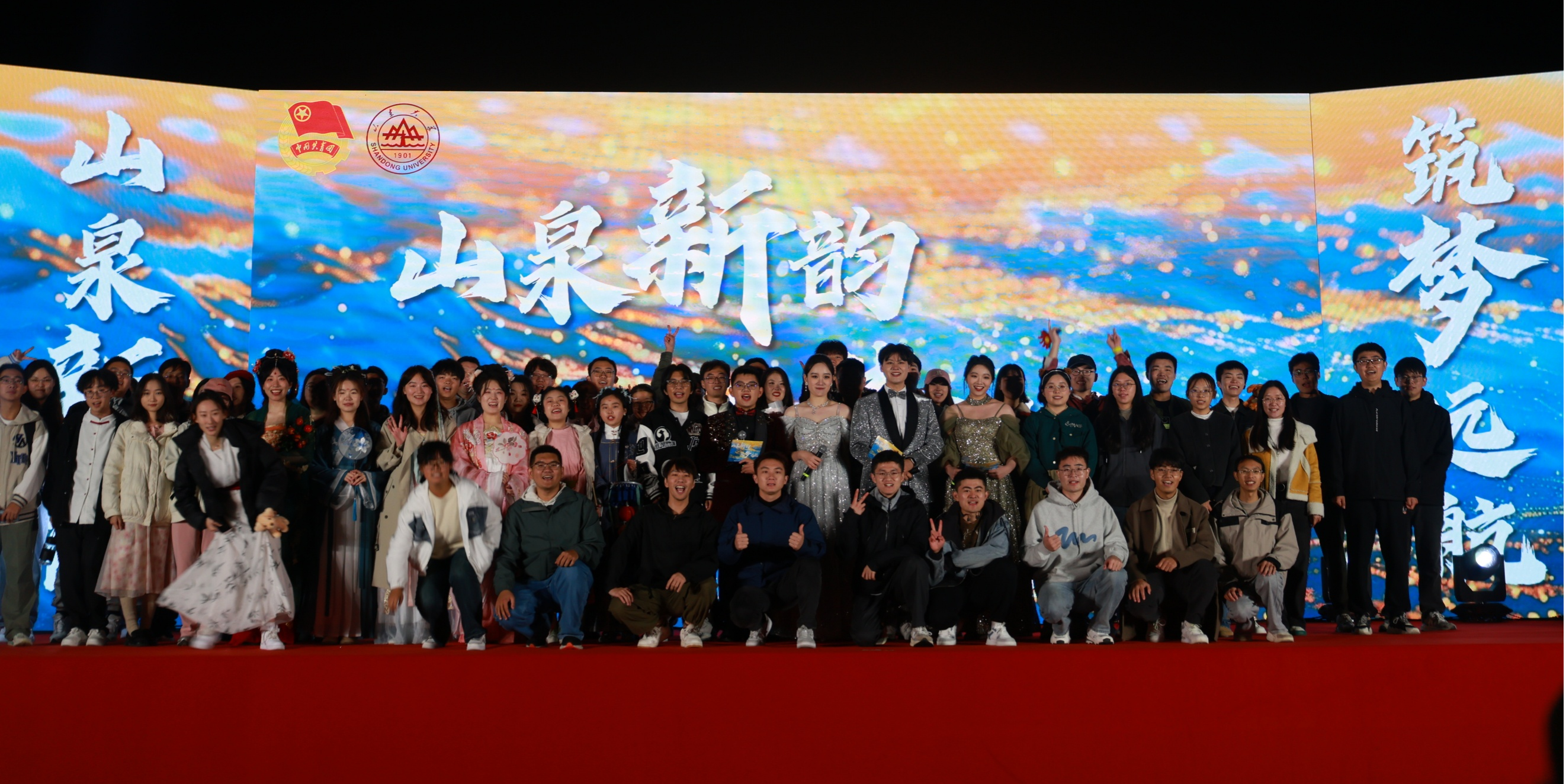 流光溢彩迎新夜,心心相连齐飞扬。机械工程学院联合控制科学与工程学院、齐鲁交通学院、体育学院、基础医学院、山东大学研究生会于2024年10月27日在山东大学千佛山校区操场举办了“山泉新韵,筑梦远航”2024年迎新晚会暨草地音乐节。本次晚会吸引了众多师生参与,现场气氛热烈,欢声笑语不断,展现了各学院学子的青春活力与艺术潜能。